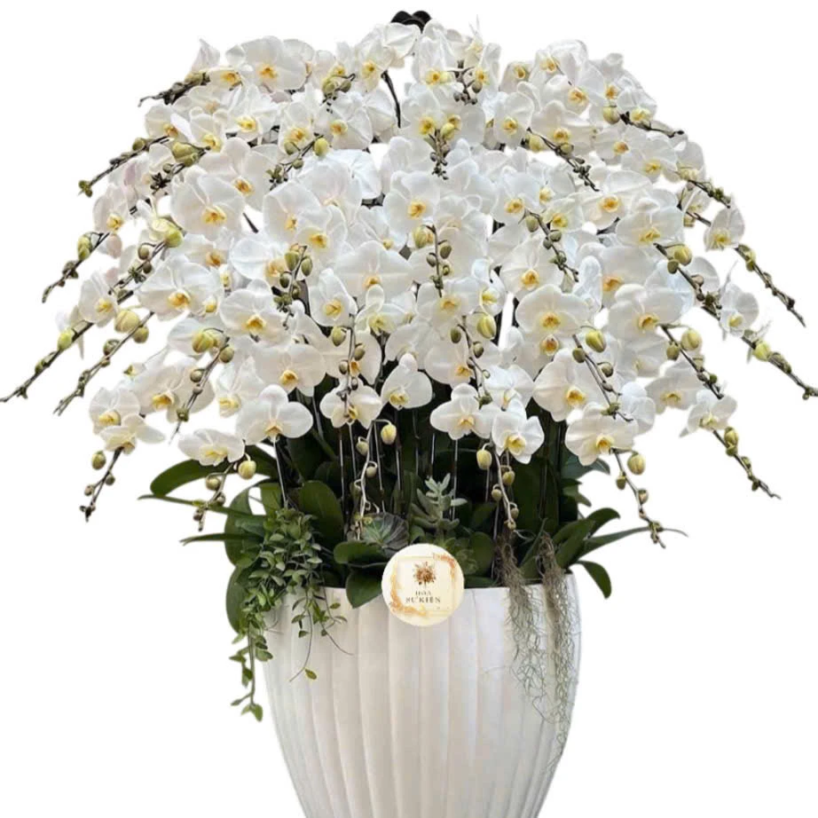 Những chậu hoa lan đẹp có một sức hút tuyệt vời bởi vẻ ngoài kiêu sa của nó, đặc biệt là những chậu lan hồ điệp trắng vừa mảnh mai vừa tạo nên một sự quý phái, lộng lẫy khiến ai đó ngắm nhìn cũng thấy rung động. Màu trắng của lan hồ điệp luôn mang trong mình một vẻ đẹp thuần khiết, màu trắng thể hiện cho sự tinh tế và sang chảnh. Hoa lan trắng có thể dùng để làm quà tặng sinh nhật cho người thân, bạn bè và đặc biệt là phái nữ vì họ yêu sự trong sáng.