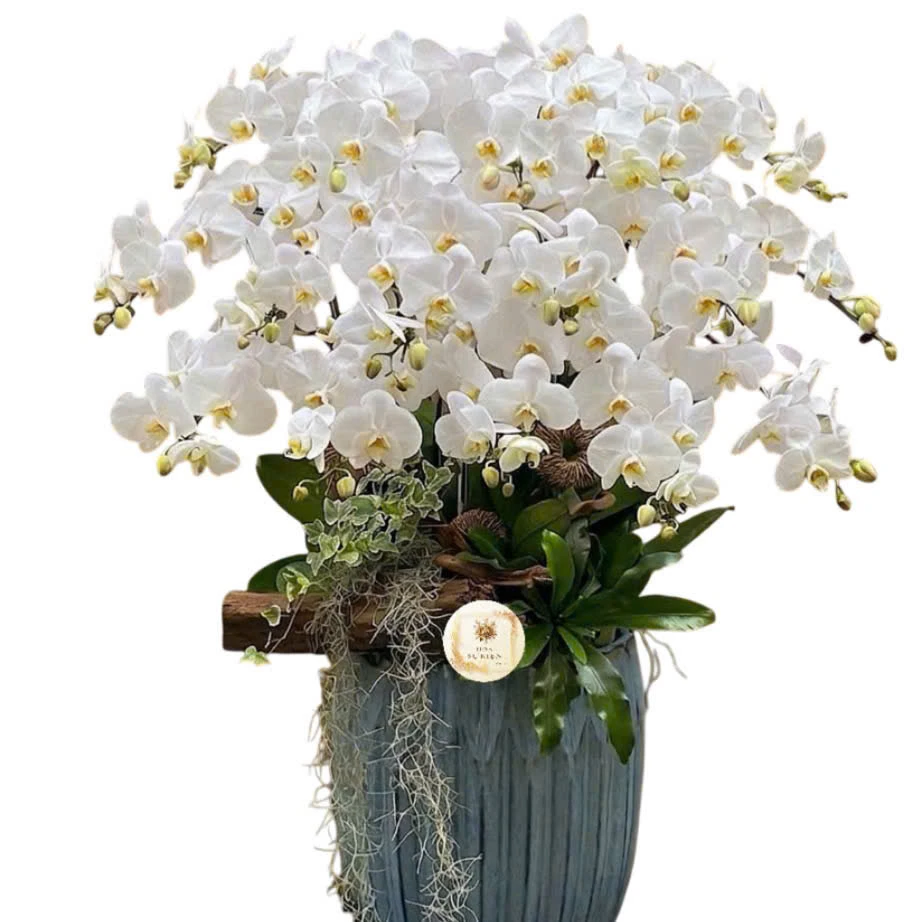 - Kết hợp: Các chậu lan thường được ghép từ 5-13 cành hoặc nhiều hơn, tạo thành các tác phẩm nghệ thuật đối xứng hoặc xen kẽ hài hòa.