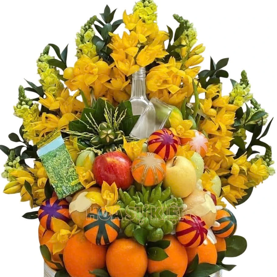 Trình bày: Đặt những quả to, nặng ở dưới làm trụ, những quả nhỏ, màu sắc rực rỡ đan xen ở trên để tạo sự cân đối và thẩm mỹ.
