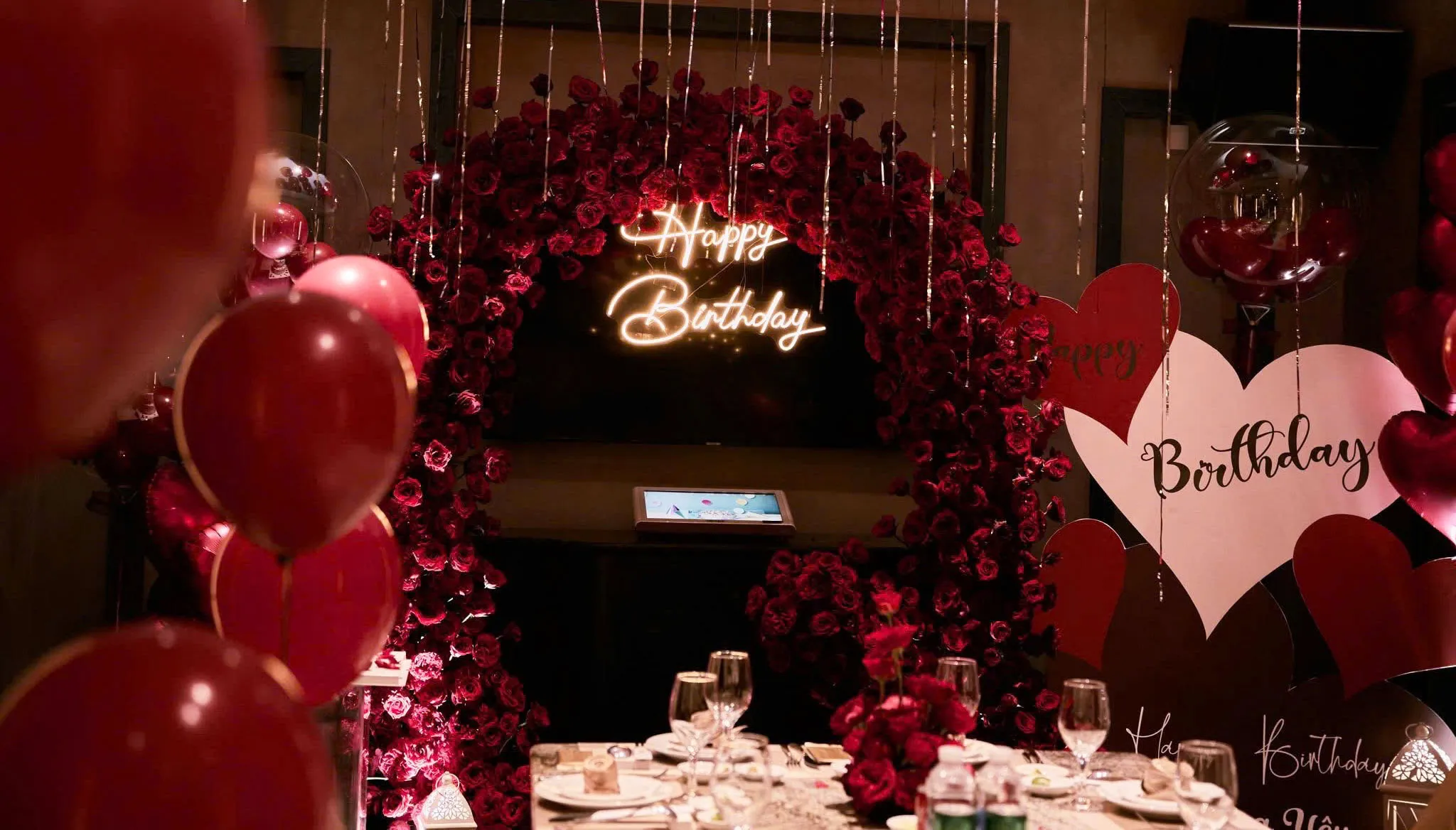 - Thiết kế bàn gallery sinh nhật với hoa tươi sang trọng